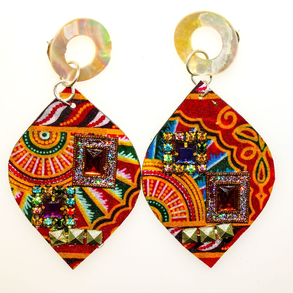 GOLDEN FLAKES & WOOD SPIKED EARRINGS